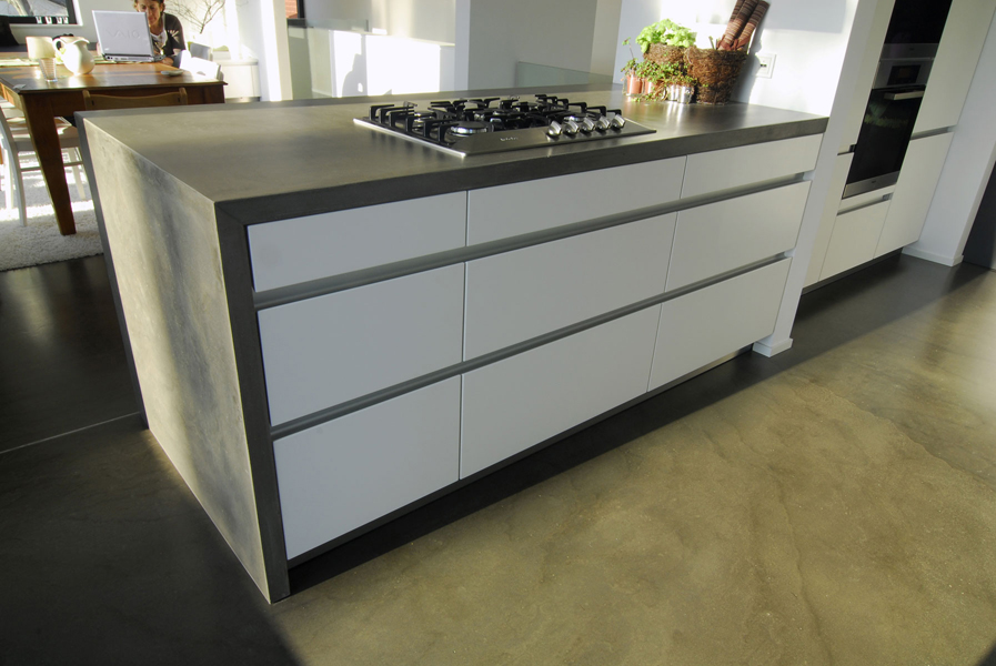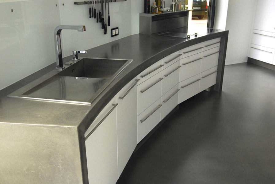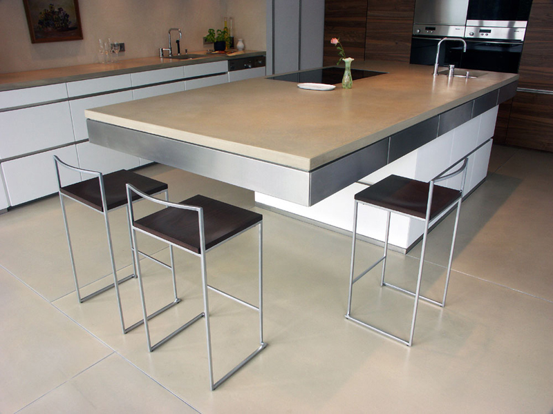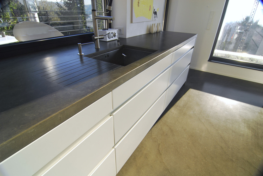 Wir fertigen Küchenarbeitsplatten, Duschplatten oder Sitzmöbel, Waschtische, Empfangstheken oder besondere Treppenkonstruktionen nach Kundenwunsch. Moderne freischwebende Treppenkonstruktionen oder Wendeltreppen. Komplette Küchen in Betontechnik.